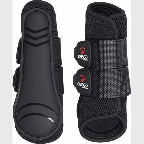 The Catago Fir-Tech training boots are breathable and durable. They are very quick to put on, while at the same time providing optimal protection for your horse’s legs. The boots are made from 3D mesh, which easily transports excess heat away from the legs during training. The hard plastic shell provides extra protection.