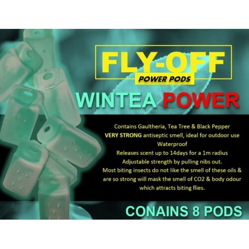 - 16 x Wintea Power Tablets (gaultheria, tea tree and black pepper) – Very strong antiseptic smell. Most biting insects do not like the smell of these oils & are so strong will mask the smell of CO2 & body odour which attracts biting flies.