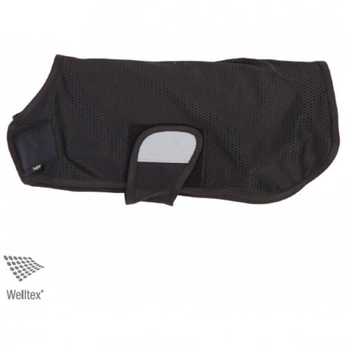 The Back on Track Hugo Mesh Dog Rug is easy to fit as dressing your dog is much easier than before as both the girth strap (which is removeable) and front chest closure are easily fastened with one wide hook and loop fastening. To keep your dog safe in the dark the rug is equipped with a reflector on the front closure, as well as both sides of the girth strap. Suitable for use during exercise or walking, designed to allow free movement around the shoulders. Ideal for older dogs as well as dogs suffering from arthritis.