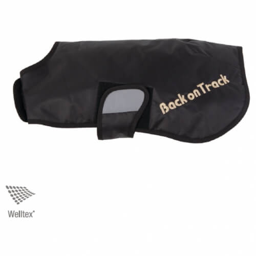 The rug is also equipped with fixed elastic leg straps to hold the rug firmly and snugly in place. The Back on Track Standard Hugo Dog Rug has a black, polyester outer layer (which is water resistant and breathable), lined with the revolutionary Welltex™ ceramic infused fabric. It can be used as a Summer Coat, as a second layer underneath a conventional blanket, as a thin, soft Training Blanket or as a Lightweight Jacket if the dog’s fur is wet. Also can be used as a Warmer (pre-exercise) and Cooler (post-exercise).