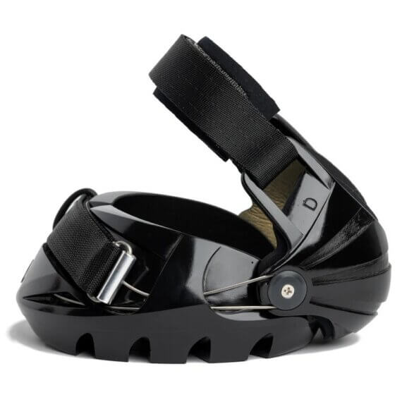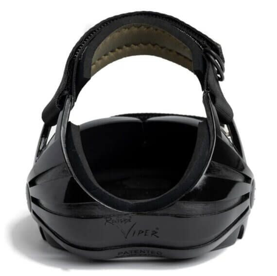 The Renegade® Viper™ Hoof Boot is the next generation hoof boot paying homage to its predecessor, the Renegade® – Classic Hoof Boot. While incorporating the same competition proven pivoting heel captivator design, cabling system, and straps as the Renegade® – Classic Hoof Boot. The Renegade® – Viper™ Hoof Boot features many new upgrades. The tread really displays the artistic talent of the Viper’s™ designer, Kirt Lander, while showing off its aggressive side where it counts. With deeper grooves for longer lasting tread, and an unforgiving look, the Viper™ tread will bite the ground better than any other hoof boot that came before. The Viper™ has been trimmed down, removing material using finite element analysis, resulting in a hoof boot that is, despite the more robust tread, about 15% lighter than the Classic, and with more lateral clearance on both the Boot Shell and the Heel Captivator. A deeper Heel Captivator “gullet” allows for improved pastern bone clearance. The material used to make the Viper™ is a new, ultra durable polyurethane resulting in a much longer lasting boot. The inside of the boot is texturized and the Heel Captivator Liner is bonded in place, both for more stability en route. The Viper™ logo and boot size are stamped very large inside of each boot for quick and easy size readability.