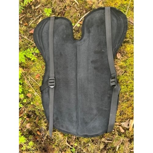 The Heather Moffett Seatbone Saver simply attaches by straps that slip underneath the saddle flaps and can be fitted and removed in seconds.
