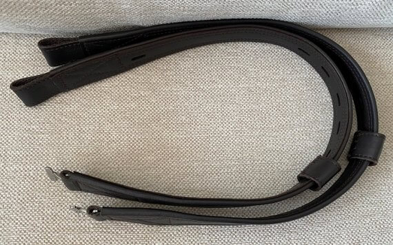 Genuine Heather Moffett Stirrup Leathers / Webbers. Will easily fit to most saddles with a t bar stirrup setting which greatly reduces the bulk under the rider’s leg.