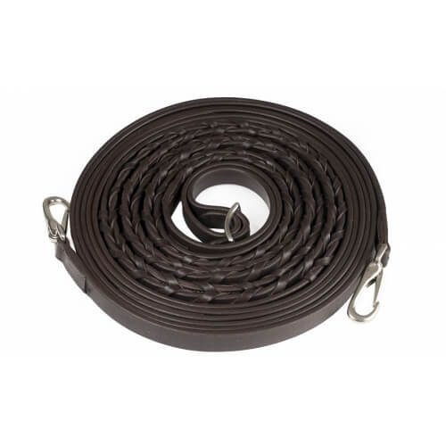 The leather is braided throughout the main part of where the reins will be handled for extra grip. They can also be split in the middle with a conway buckle if needed.