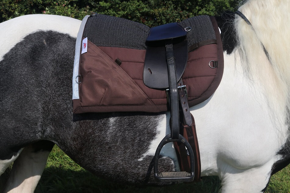 The Total Contact Saddle is available in two types. One with shorter girth straps – for use with a standard length type girth – and one with longer straps – for use with a shorter / dressage length girth. You don’t need special girthing or stirrups. For welfare reasons the stirrup attachment is set lower down the horse’s side than a traditional English saddle so as to prevent ‘white marks’ and soreness. Each saddle is hand made from high quality leather by an English Master Saddler and uses English metal fittings.