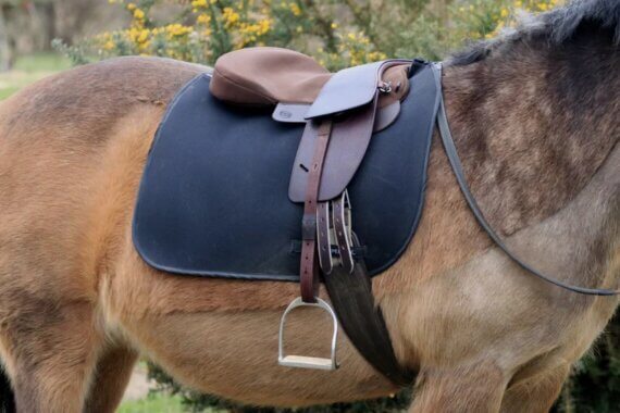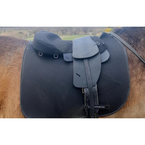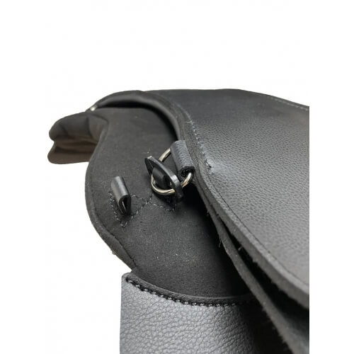 - It is available in Black and Brown, Equi-suede for grip or Black Synthetic Leather. They have two handy D rings either side for carrying saddle bags.