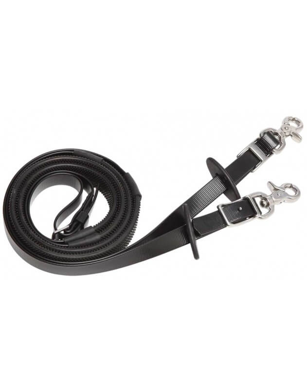 These Zilco Reins are made from coated webbing. They attach to the bridle with light yet strong stainless steel rein snaps and buckle together at the centre. They come complete with rein stops for those who use a martingale. The reins are available in the following size: