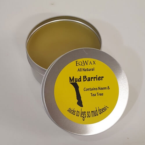 EqWax Mud Barrier Balm in a 250ml tin. The EqWax Neem Mud Barrier Balm protects your horse’s legs from muddy conditions. It creates a waterproof barrier to prevent mud reaching the skin.