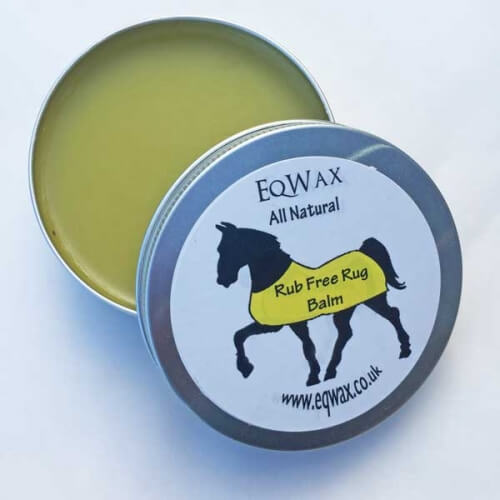 EqWax Rub Free Rug Balm in a 100ml tin. The EqWax Rub Free Rug Balm helps to prevent horse rugs rubbing shoulders, chests and necks. Contains beeswax, coconut, avocado and macadamia.