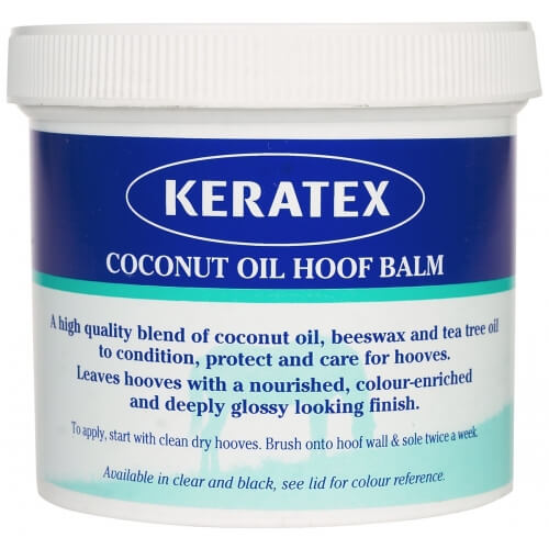 Keratex Coconut Oil Hoof Balm in a 400 Gram tub. Keratex Coconut Oil Hoof Balm is a high quality blend of coconut oil, beeswax and tea tree oil to condition, protect and care for your horses hooves. Plus it smells divine!