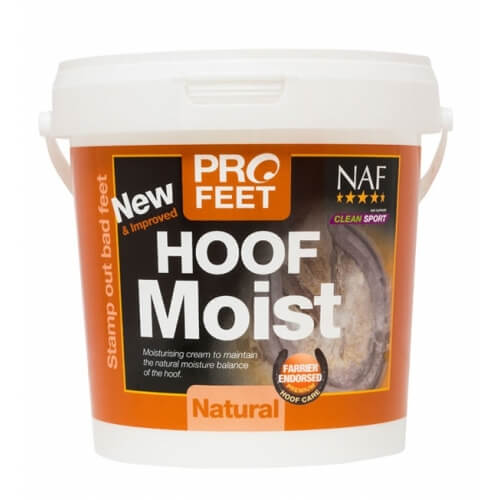 NAF PROFEET Hoof Moist in a 900 gram tub. Natural colour so can be used on all colour hooves. PROFEET Hoof Moist is designed to address those arid conditions that lead to moisture losses in the hoof horn. As a moisturiser that is oil and grease free.