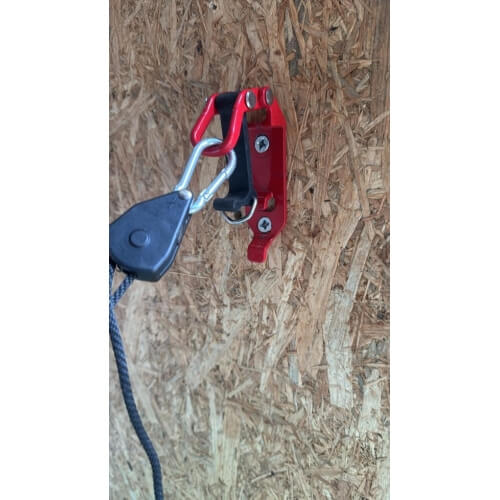 - To load: release the latch and lower the frame, fill with forage of your choice and then pull the cord to raise it back and then secure the latch in place.