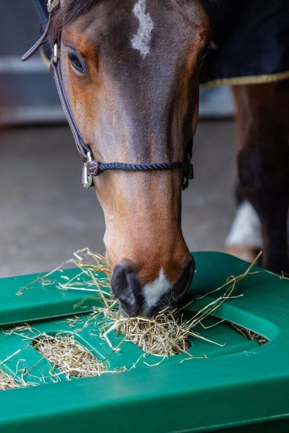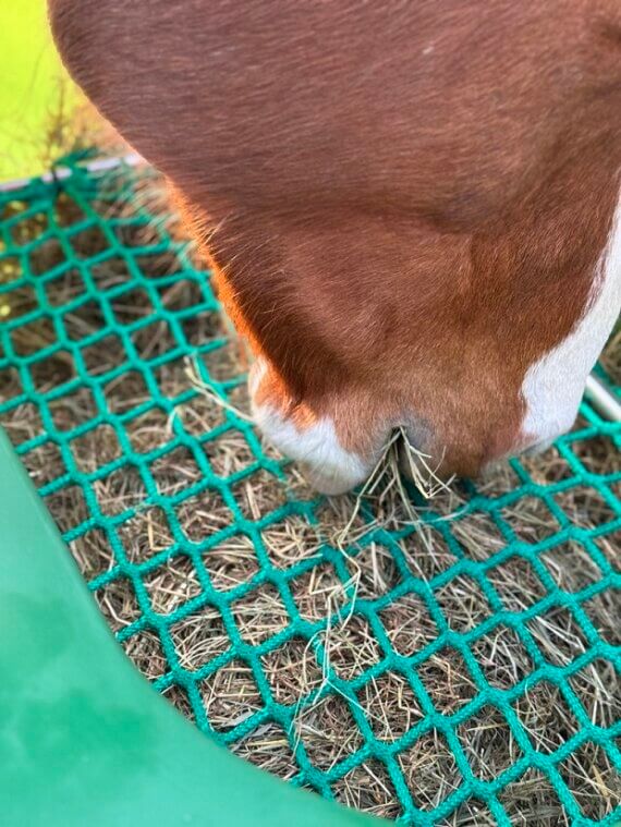 - Encourages healthy eating patterns and allows horses to eat at a natural level.