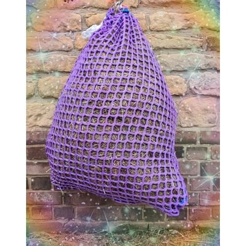 Ideal for horses or ponies stabled overnight, on a track system or for travelling. Small holes to restrict hay / haylage intake and reduce wastage. Each Trickle Net has been hand stitched in England.